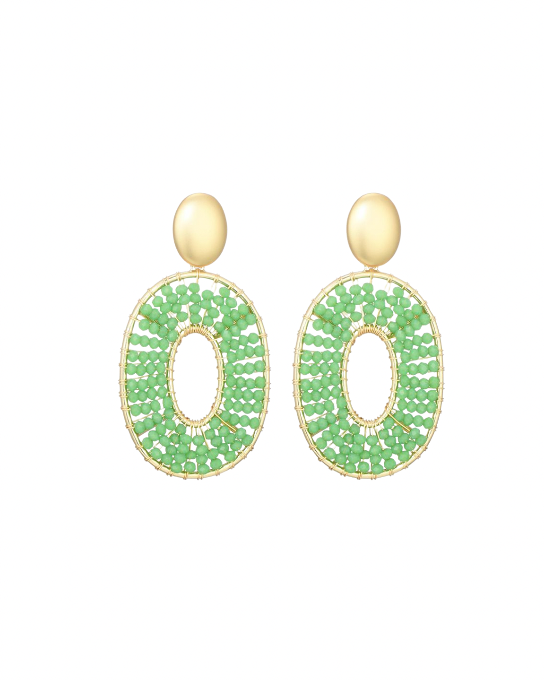 Oorbellen ovaal groen - stainless steel