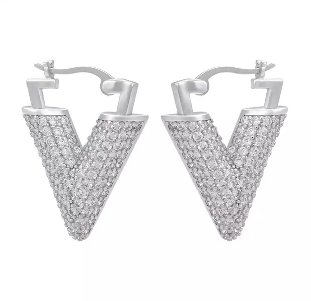 Zirkonia gezette zilver plated oorbellen in de vorm van een V.